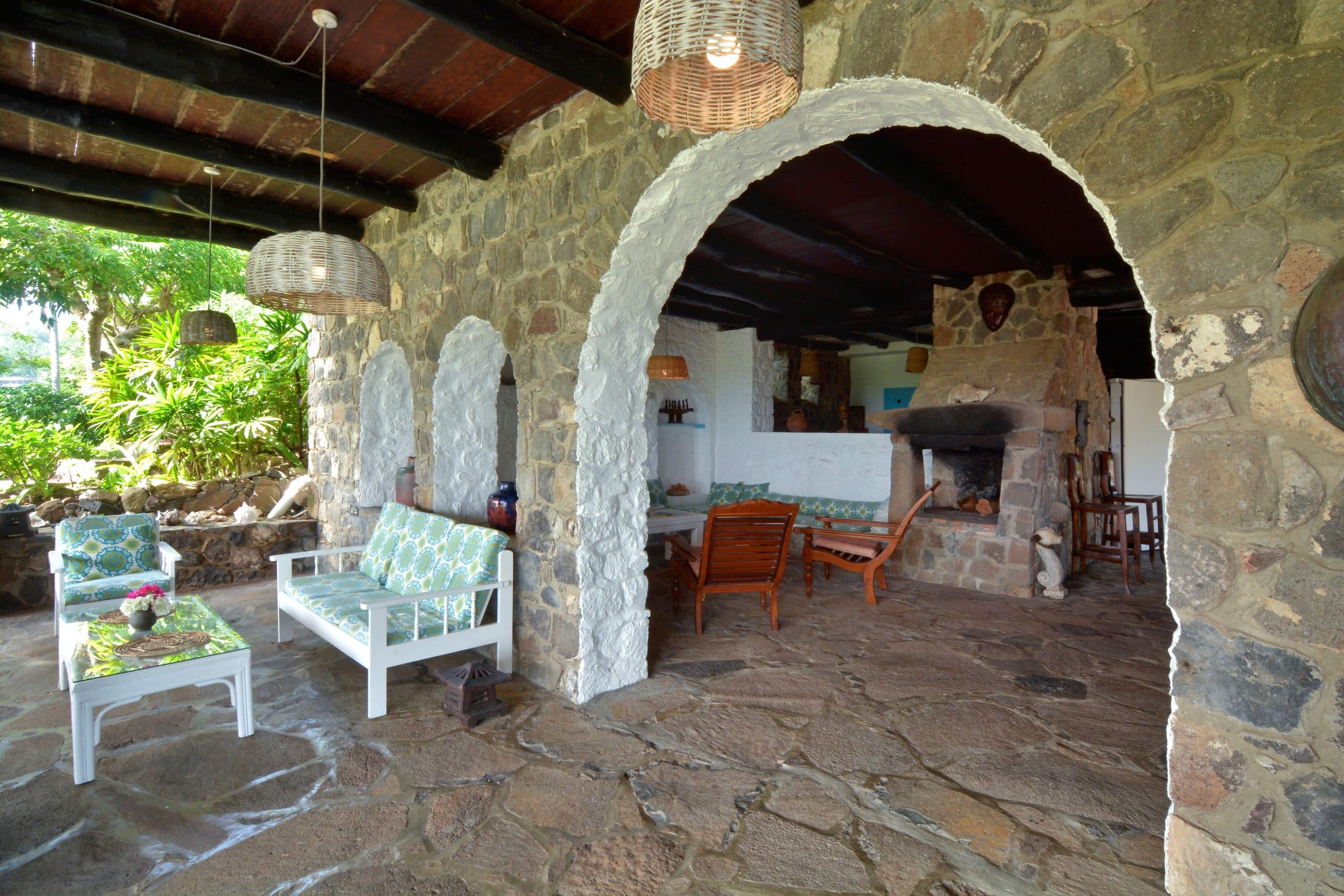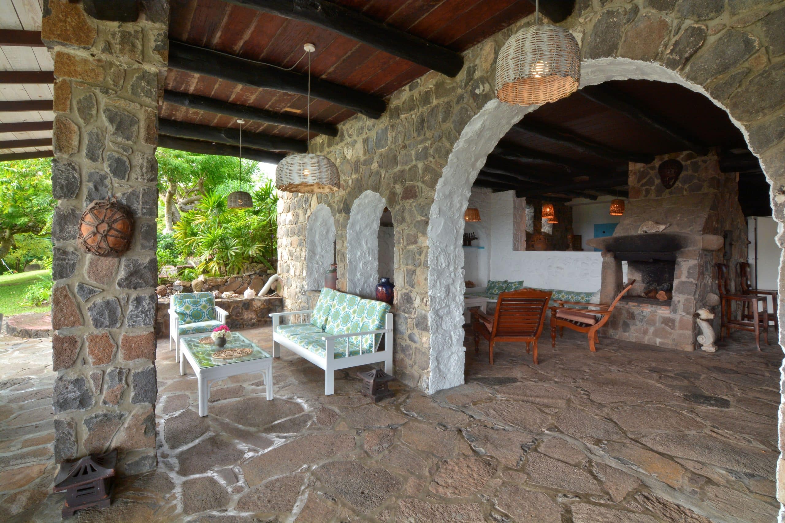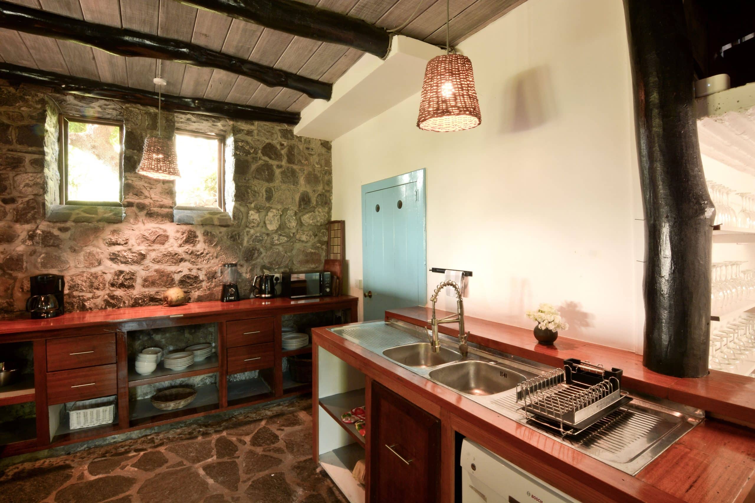 This eco villa boasts an open-air design, embracing its natural surroundings and eliminating its carbon footprint with solar panels. Opting for natural ventilation is an accurate model for sustainable living, ensuring that every stay is as environmentally responsible as it is comfortable. Experience the ultimate blend of history and eco-friendliness at this stunning carbon-neutral property. The house is naturally cooled by the breeze from the Atlantic Ocean, which makes the indoor temperature comfortable enough to use a blanket at night. The house has recently added a/c units in two of the bedrooms for those with sensitivity to the tropics.